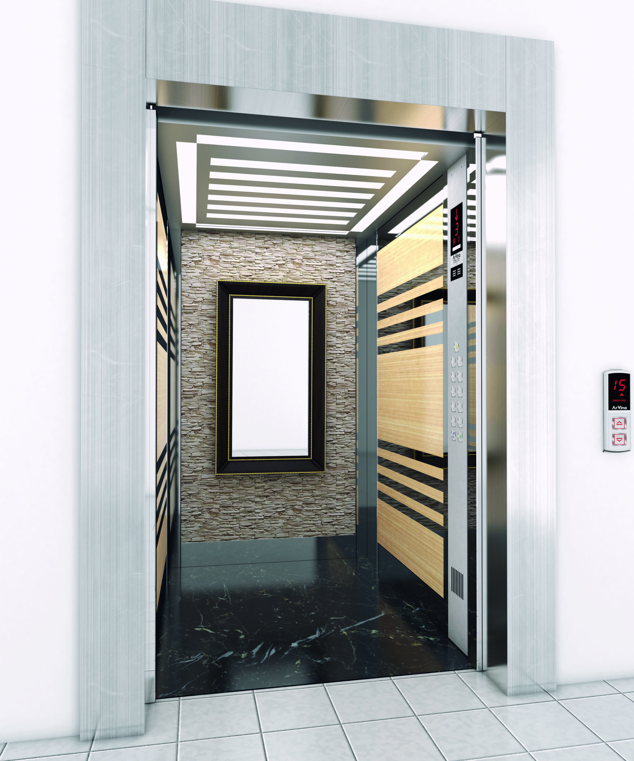 Asansör kabinlerinde kaliteli malzeme kullanılır ve MEELC markasıyla üretimi yapılan asansör kabinlerinde alternatifli tasarımlar bulabilirsiniz.